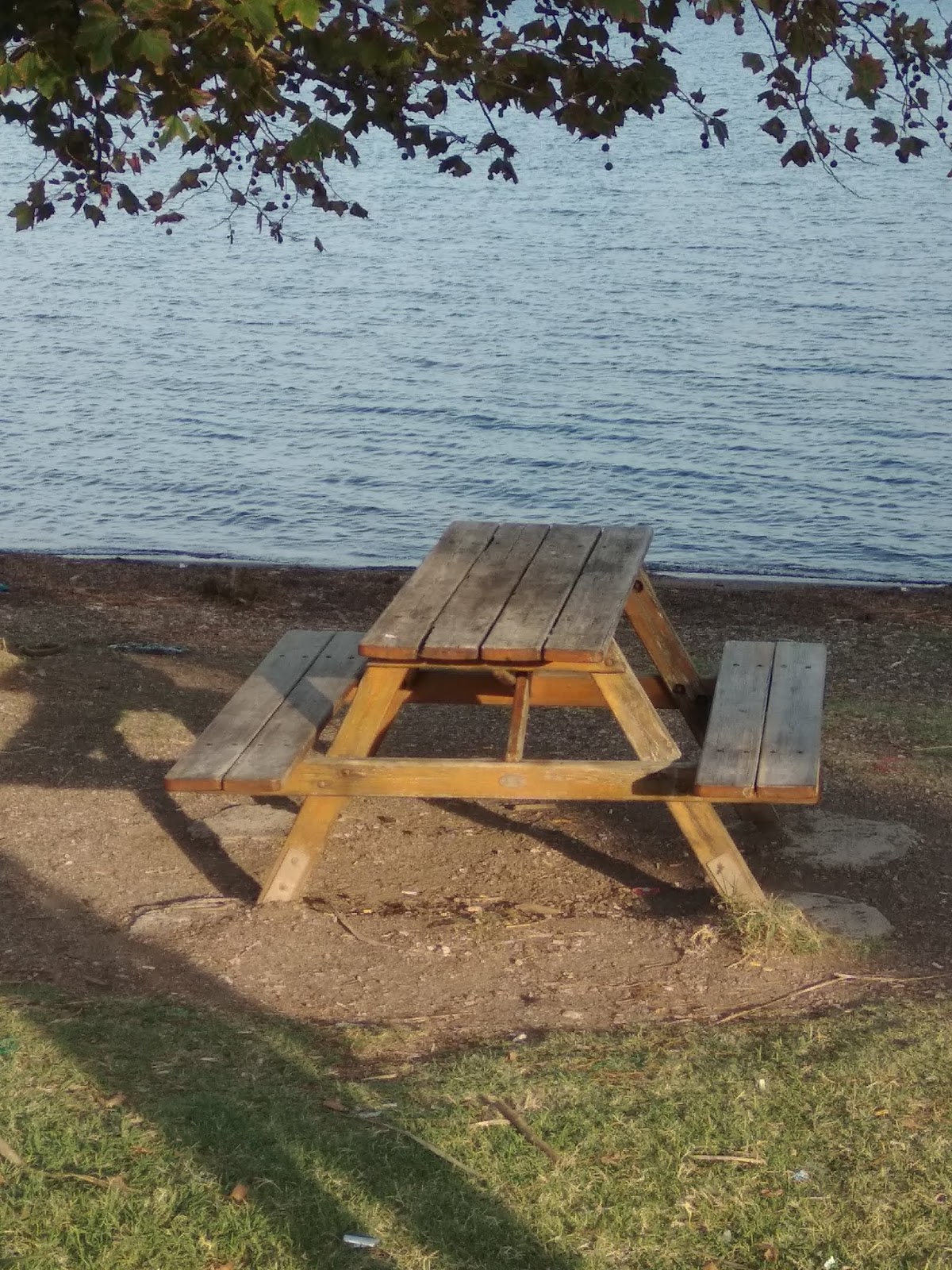 Το άνετο παγκάκι με το τραπεζάκι, που πριν λίγο ήταν συνέχεια γεματο με ανθρώπους και γελια, απέμεινε μοναχό κάτω από τον πλάτανο.