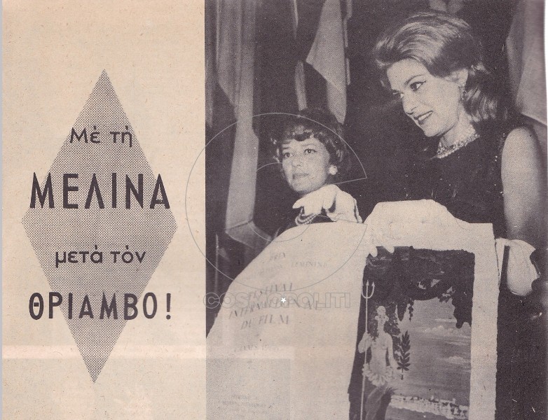 Το 1960 ξεκινά και το φεστιβάλ κινηματογράφου Θεσσαλονίκης. Την ίδια χρονια, η Μελίνα Μερκούρη βραβεύτηκε στο φεστιβάλ των Καννών για την ερμηνεία της στο «ποτέ τη Κυριακή» και ο Μανος Χατζιδάκις πήρε Όσκαρ τραγουδιού για τα «παιδιά του Πειραιά» στην ίδια ταινία. Ο «Αλέξης Ζορμπάς» του Κακογιάννη παίρνει 3 Όσκαρ. Την ίδια εποχή, οι πιο επιτυχημένες εταιρίες παραγωγής είναι η Φίνος Φιλμ και η Καραγιάννης – Καρατζόπουλος.
